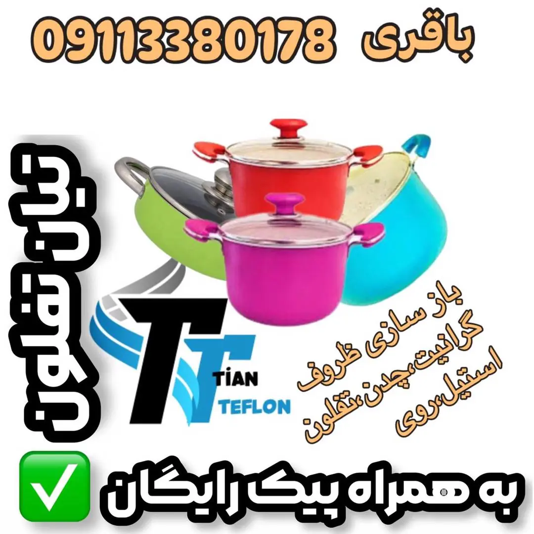 در ضمن کتری،چدن گاز، ساندویچساز، سرخکن،سینی فر، سینی معمولی، سینی توستر هواپز،پلوپز ،تابه و قابلمه ی روی و کباب پز هر آنچه از فلز هست بجز لعاب و مس رو تبدیل به گرانیت درجه یک میکنیم.
